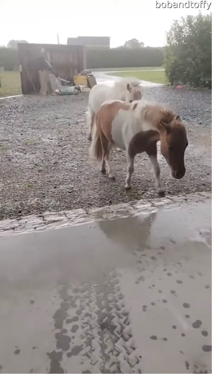 突然の雨に見舞われてたヒツジとポニー。 飼い主さんがこの子たちに「戻っておいで」と声をかけてみたところ・・・。