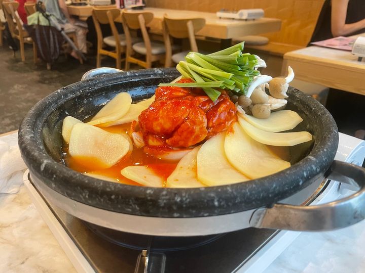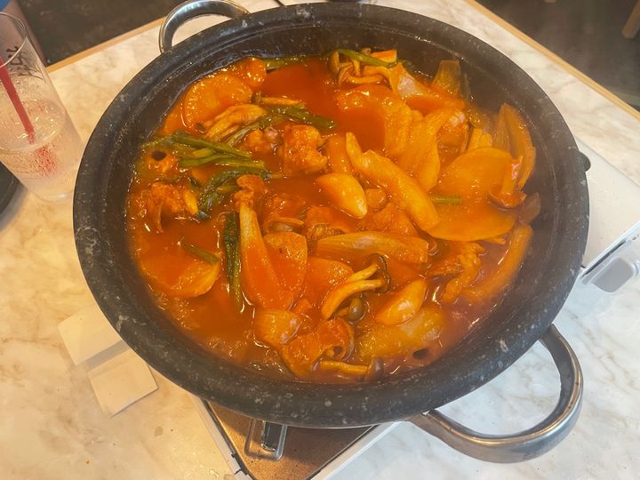 息子は食べられないですが、どうしても大人が食べたくて、コプチャンチョンゴルもいただきました。 コンロは1つなので、メインを2つ以上食べる場合は、順番に調理する形になります。