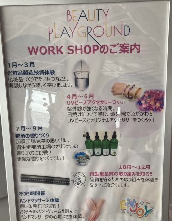 資生堂那須工場体験型見学施設 「BEAUTY PLAYGROUND 」完全予約制で公式ホームページより予約できます。(9:30/13:30スタートで所要時間は120分)