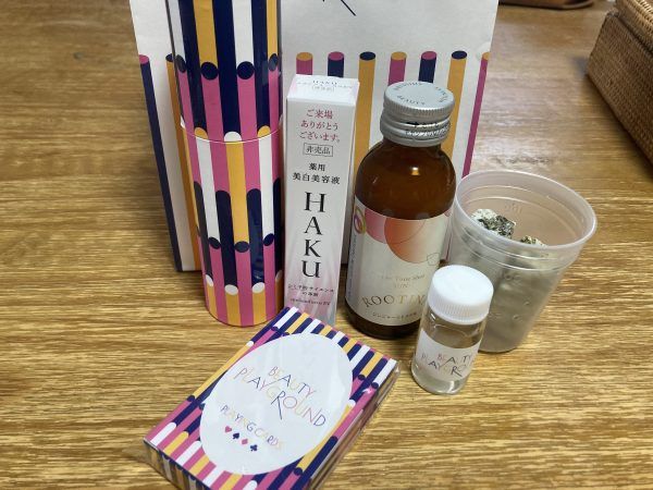 見学に参加した人はガチャを一人一回ずつ回し、お土産としてもらえます。マスキングテープ、エコバッグ、トランプ、缶バッチ、ボールペン、HAKU(美白美容液・20g)の六種類で、今回なんとHAKUをゲット!月が替われば工場見学に参加できるようなのでどうしてもHAKUが欲しければ再チャレンジしてみてくださいね。