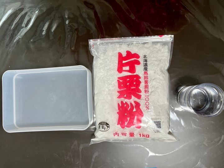 水の量は片栗粉2に対して、水1を使用しました。(様子をみて調整してください。)