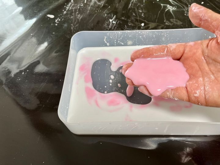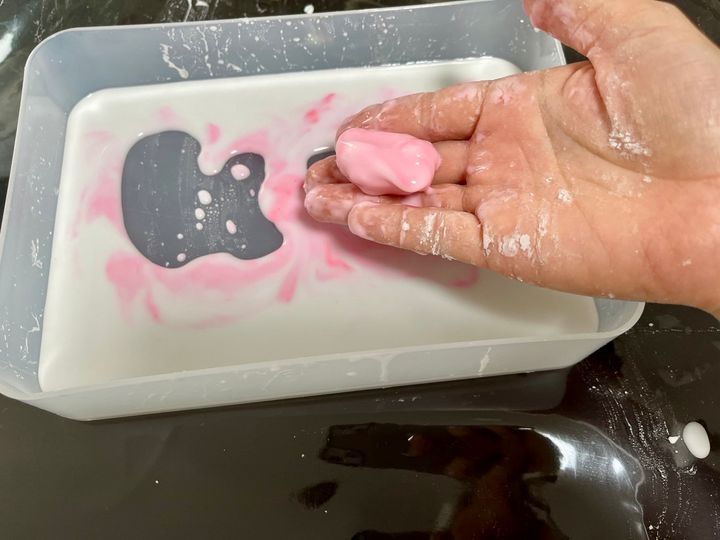 握っている時は固いですが、手を広げると液体に戻ってしまいます。