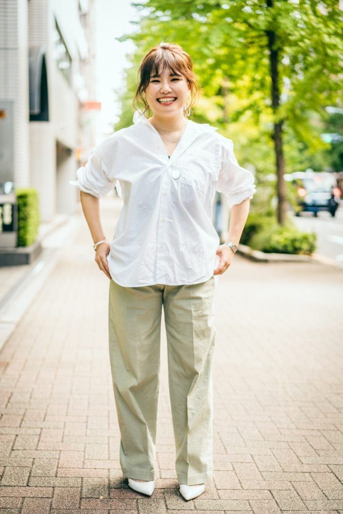 身長157cm・ストレート骨格タイプで上半身に厚みが出やすいうえにグラマーさんなので、さらに太って見えやすいのがお悩みです。