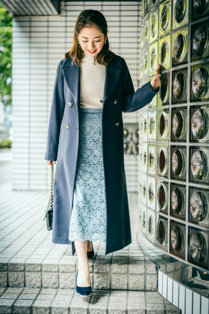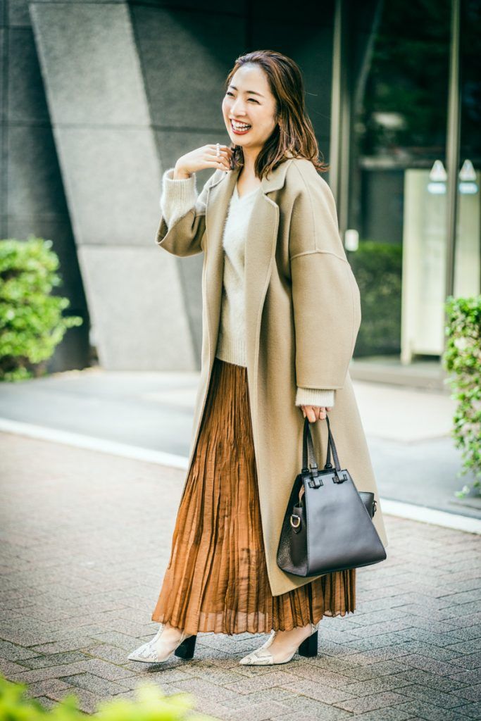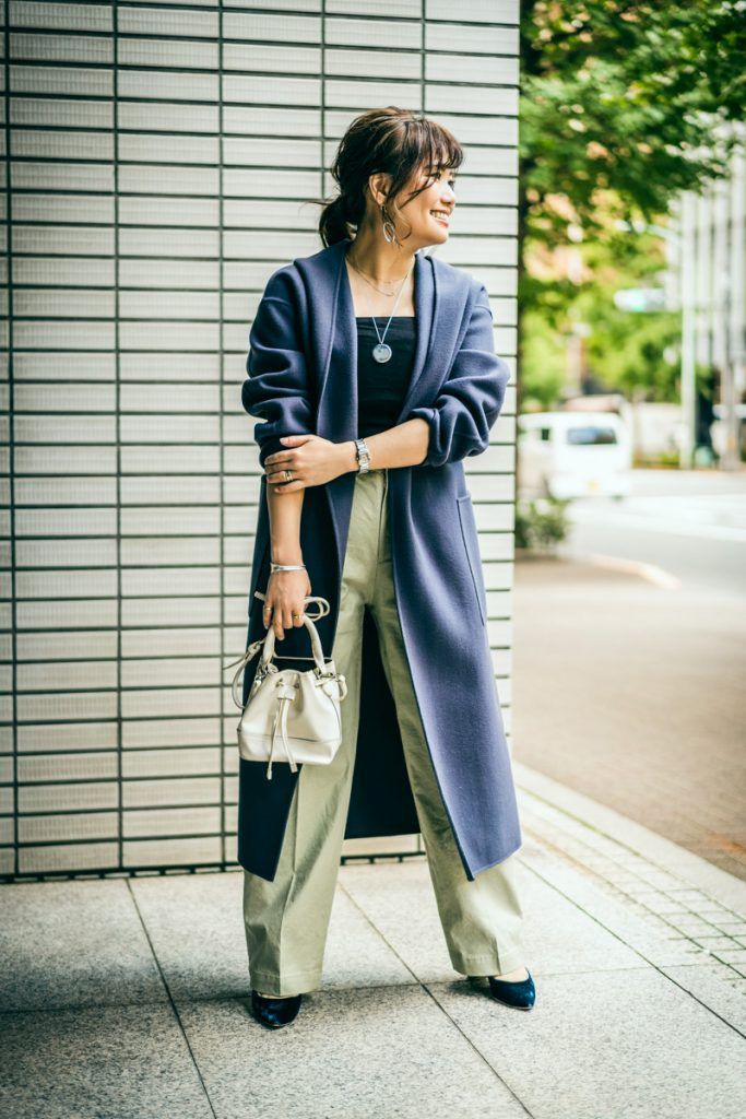大きめ衿とスーパーロング丈で身体を華奢に目くらまし