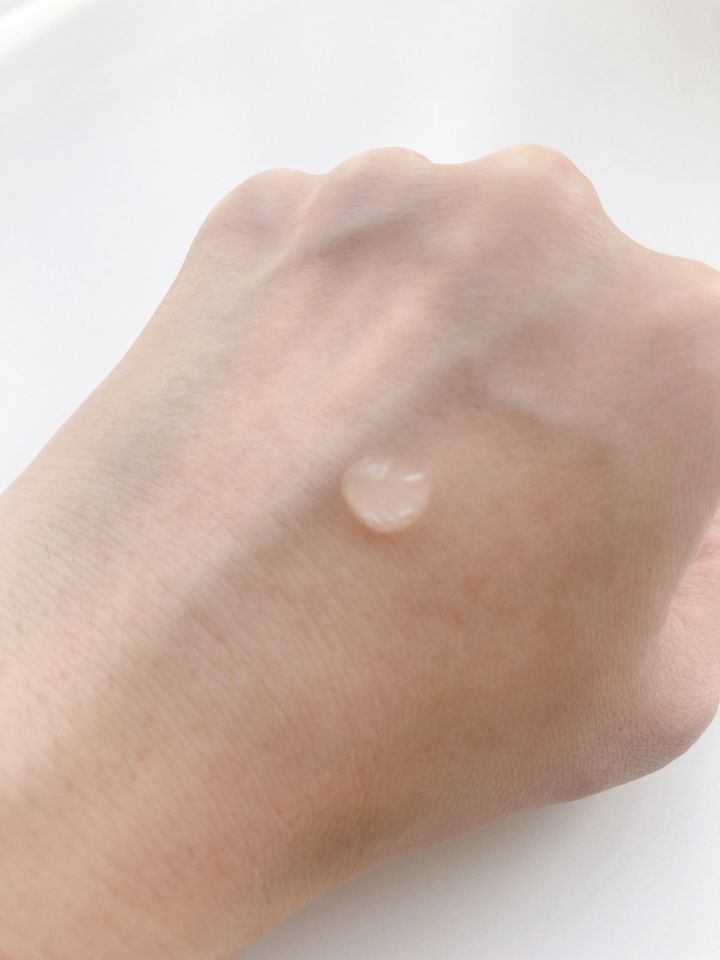 1プッシュで全顔に塗り広げられる伸びのよさ。ただの透明のジェルに見えますが、威力は絶大!