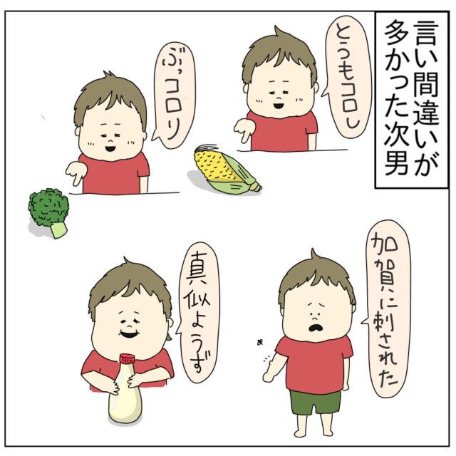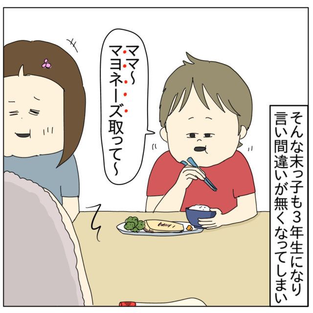 高校生長男と長女、中学生次女、小学生次男の4人きょうだいのママであるチャーさんから、可愛かった言い間違いを卒業してしまった次男くんのお話です。