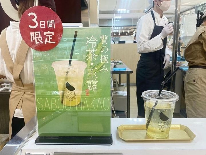 「贅の極み 冷茶・玉露」は、美しい色と上品な味のドリンク。ドライブやお買い物の合間に水分補給として単品で注文してもするのもおすすめです。