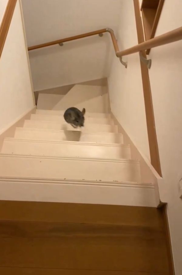 3. 閃光のように階段を駆け上がるチンチラが話題に!「うっ、浮いてる〜」「舞空術だ・・・」