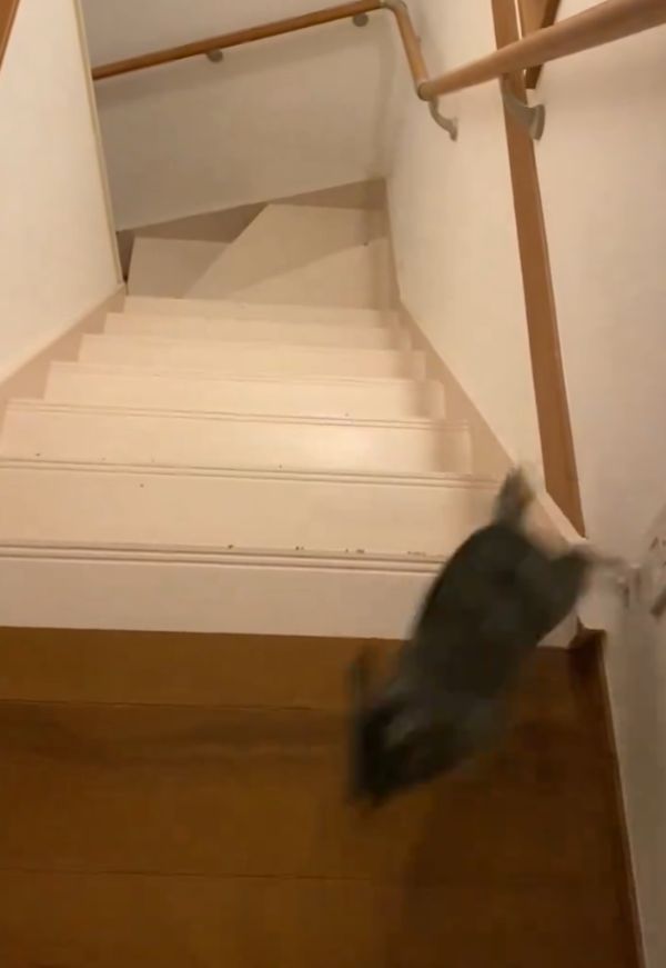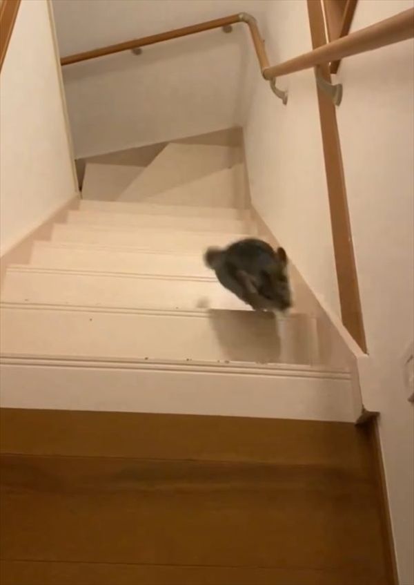 閃光のように階段を駆け上がるチンチラが話題に!「うっ、浮いてる〜」「舞空術だ・・・」
