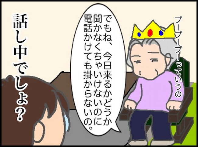 さらに、義姉が今日来るのかどうか確認したいけれど、電話がつながらないと愚痴り始めました。義姉には負担をかけられないと、「無理して来なくていい」と伝えている義母。それならわざわざ電話をする必要はないのでは……? と思い、そう伝えますが、都合の悪いことは聞こえない様子。本音と建前がこんなに違う人の相手は、ラクではありません……。