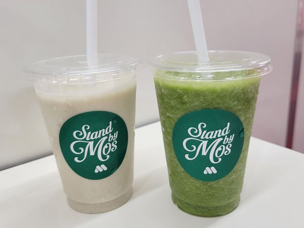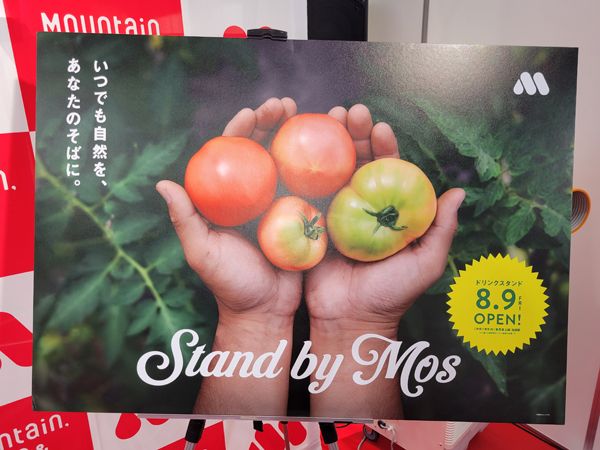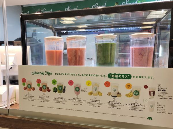 「Stand by Mos」(スタンドバイモス)は、モスバーガーの店舗で使用する「モスの生野菜」をいかした、規格外品などを使用したスムージーやジュースを味わえるドリンクスタンド。