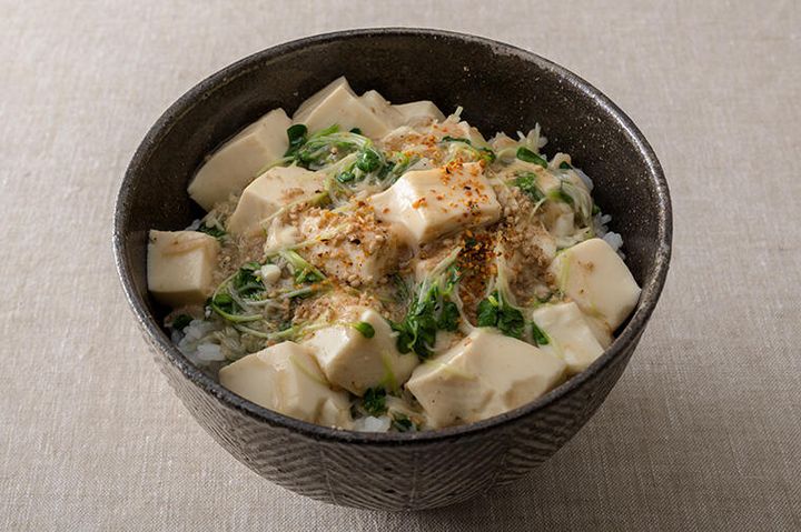 味のベースは帆立缶。生姜で爽やかさをきかせます。豆腐はつるりとした絹ごし。とろみをつけた、たっぷりの汁とかき込むどんぶりは、お酒を飲んだ後の小腹満たしにも、ぴったりです。簡単、おいしい、栄養たっぷりのどんぶりレシピを料理研究家の田口成子さんに教えてもらいました。