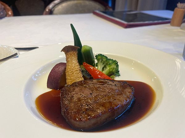 魚介と鴨の前菜、ポットパイのポタージュスープ、イサキのポワレ、分厚い牛ステーキなど、素材の旨味が深く、野菜は新鮮。贅沢なソースに感動しながらいただきました。