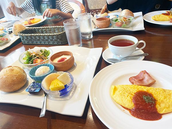 清々しい朝。ぐっすり眠れてゆっくりと起き、自分で作らず豪華な朝食がある幸せ。シェフ特製のオムレツ、胚芽ロールパン、自家農園サラダ、フルーツ、ヨーグルト。感謝しながらいただきました。