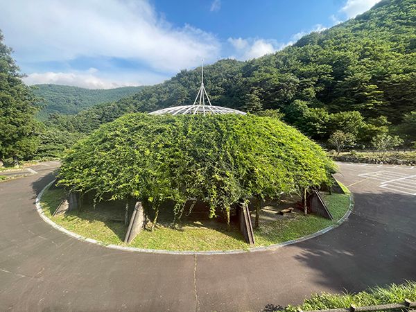 宿泊室からは直径45m、日本最大級のドーム型パーゴラが見えます。藤の季節にぜひ訪れたい