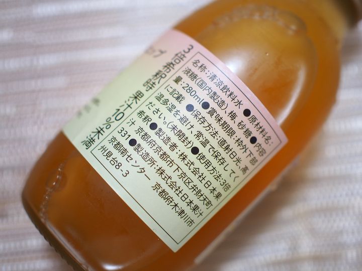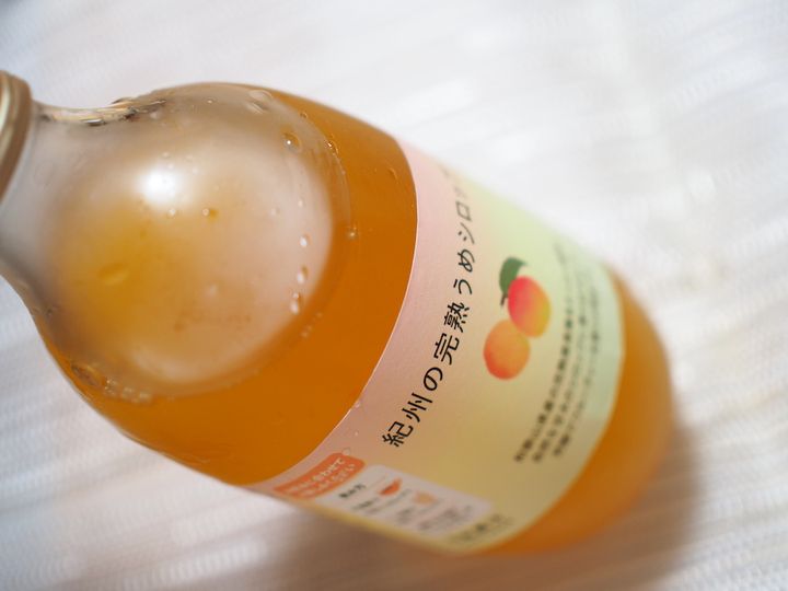 この瓶の形と透き通るように綺麗な梅シロップの色に惹かれ、美味しそう…買おうかなと