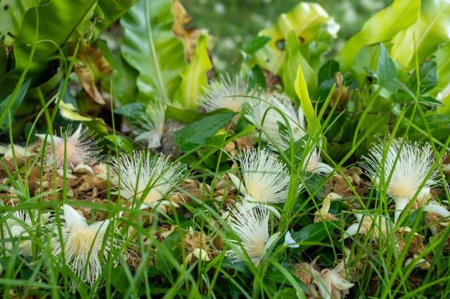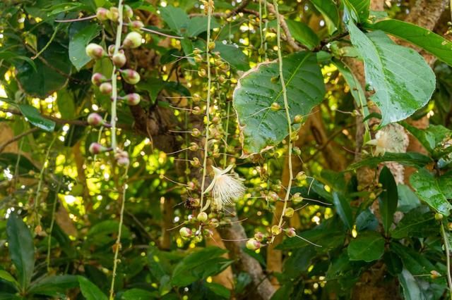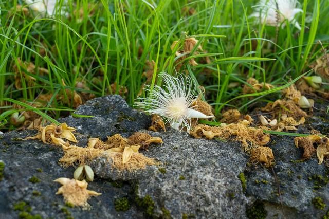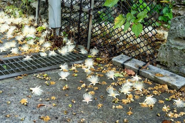 そこで思いがけず「サガリバナ」が散っているところに遭遇しました。なんとこの花、たった一夜だけ咲き、夜の間に散ってしまうのです。梅雨明けから夏にかけて咲き始めるとのこと。