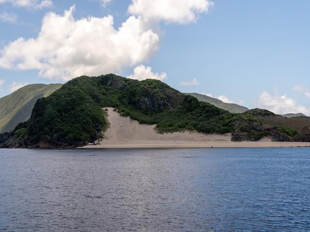 強風によって吹き上げられ砂浜が滑り台のように見えるのが特徴。島には漁船をチャーターして上陸することができますが、与路島の区長さんの許可が必要で、景観を守るために砂浜の上部に登ることはできません。