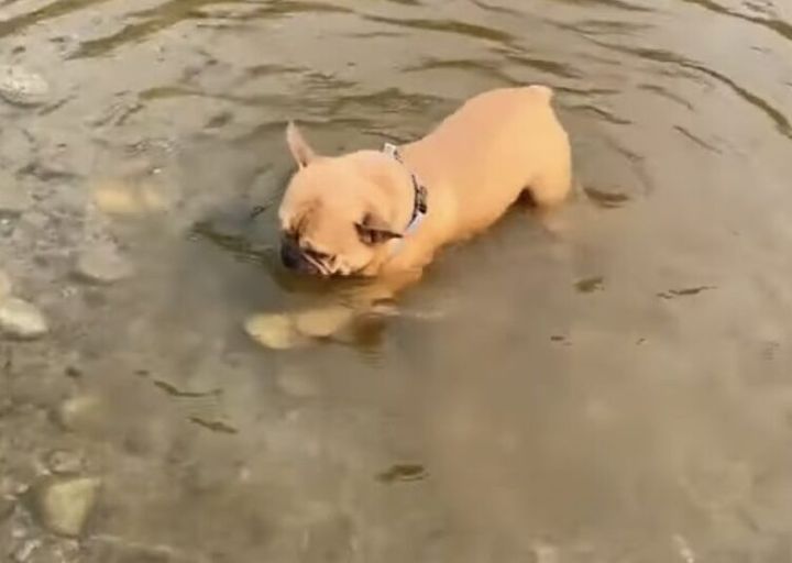 「どうしてもこれが欲しい!」川の中で頑張る犬さん。