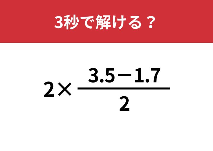 一瞬で解く方法わかる?「2×(3.5−1.7)/2」5秒で解ける?