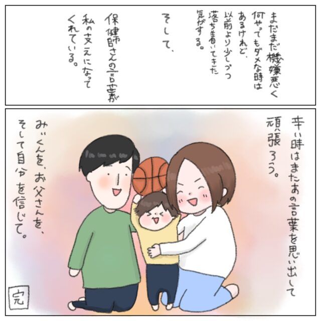誰かに相談することのハードルが高く感じるときもありますが、保健師さんに相談して本当によかったですね!イヤイヤ期が終わっても、保健師さんのこの言葉はずっと心の支えになってくれそうです。