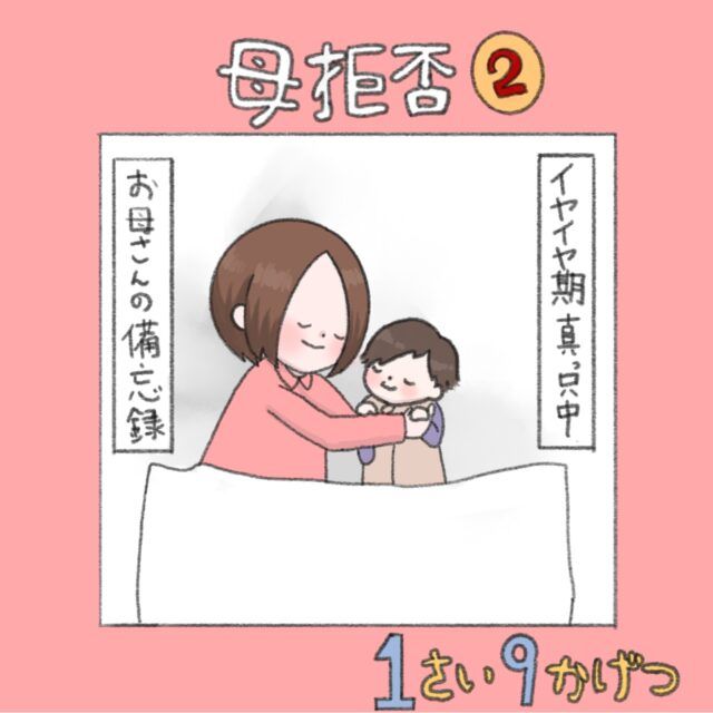 1歳9ヶ月頃からイヤイヤ期に入ったみぃくん。特に寝る前のイヤイヤが激しく、お父さんとまだ遊びたいみぃくんは「アチャ(お母さん)イヤ!」と激しくねむりひつじさんを拒否することがありました。みぃくんのこの言動にとても傷つき、母親としての自信がなくなっていってしまったねむりひつじさんは、このまま一人で悩んでいても病んでしまうと思い、保健師さんに相談してみることにしました。