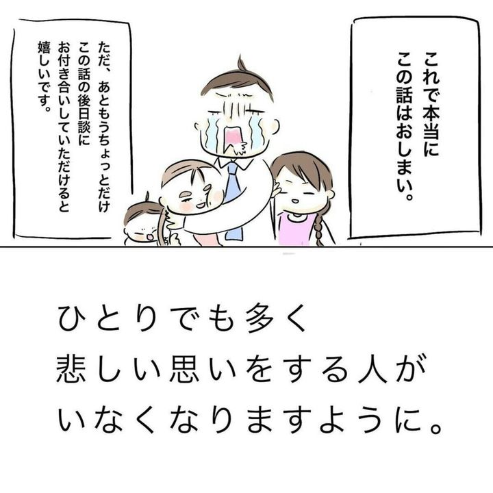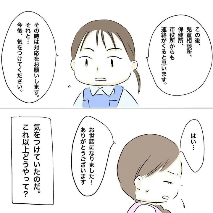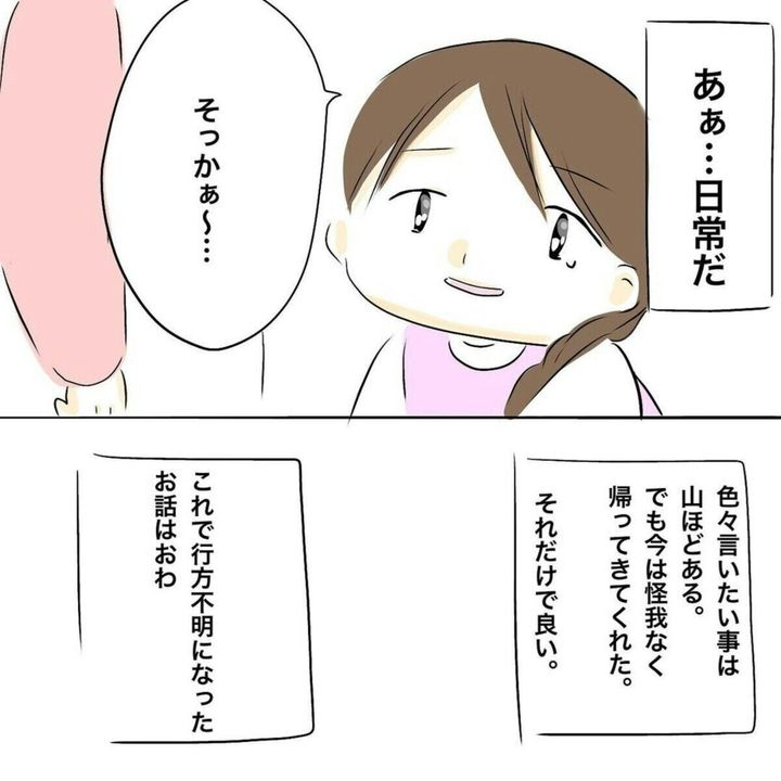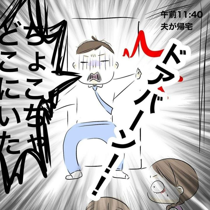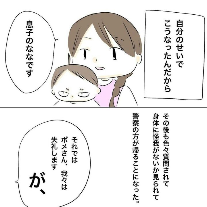 やっと日常がもどってきたところに大慌ての夫が帰宅。夫もきっとわが子に起きた事態に血の気が引いたことでしょう。