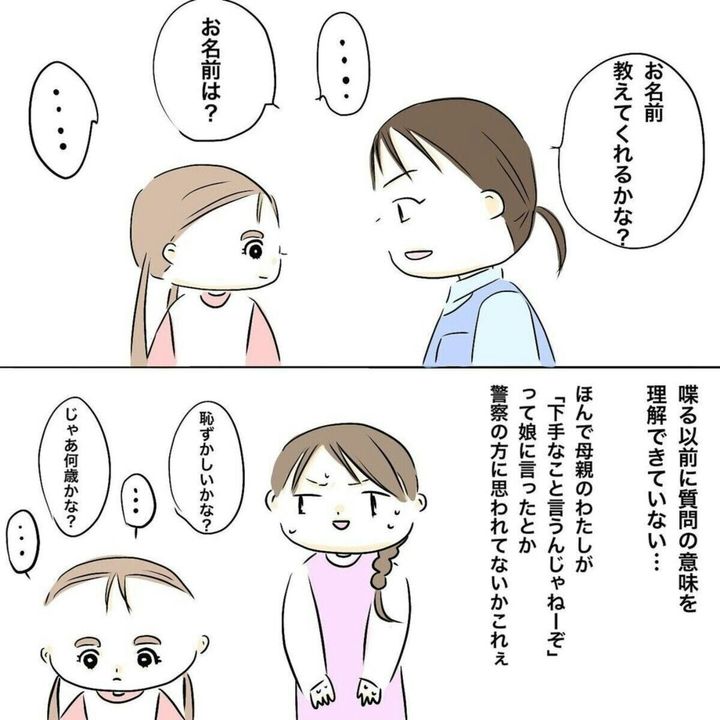 警察官によって保護された娘・ちょこちゃんとの再会を喜ぶポメ(@choco_nana_mam)さん。警察官はちょこちゃん本人にも質問をしますが、療育中のちょこちゃんは質問の意味を理解できず黙ったままです。そんななか、ポメさんも平常心を保ちながら必死に対応をします。『おしゃべりできない娘が行方不明になった』第5話をごらんください。
