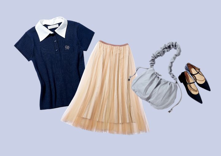 流行りの〝バレエコア〟とハイウエストボトムスで小粋に更新