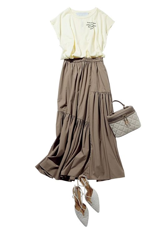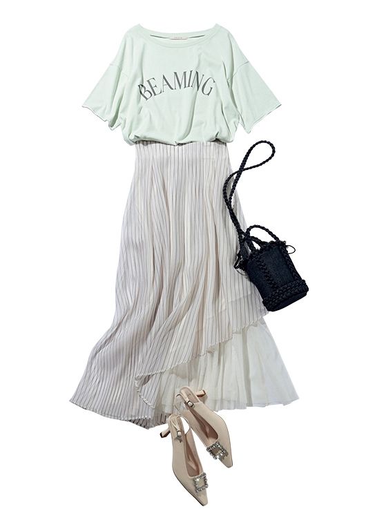 Tシャツ¥9,680/Stola. スカート¥11,000/31 Sons de mode(ヒロタ) バッグ¥7,590/カシュカシュ(アンビリオン) パンプス¥8,910/RANDA