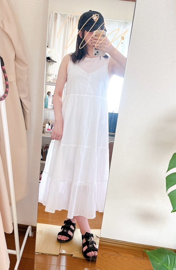 2つ目は、同じくUNIQLOで購入できるキャミワンピースをレイヤードしたコーデ。