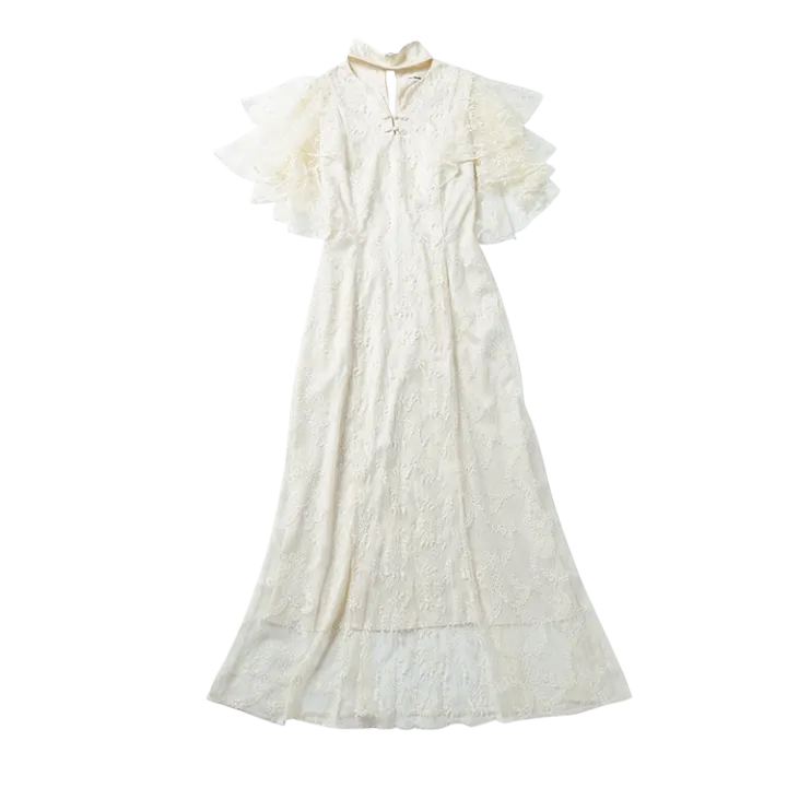 全体にレースをあしらった、クセのあるチャイナドレス風ワンピ。