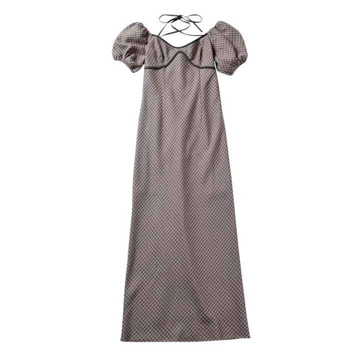 ブラウンパイピングチェックロングワンピース 14,300円/Darich(YSM)