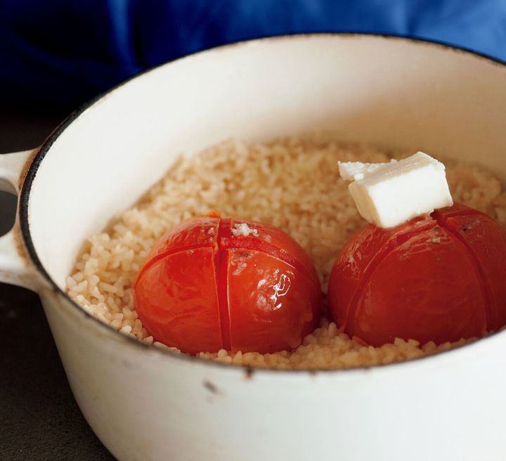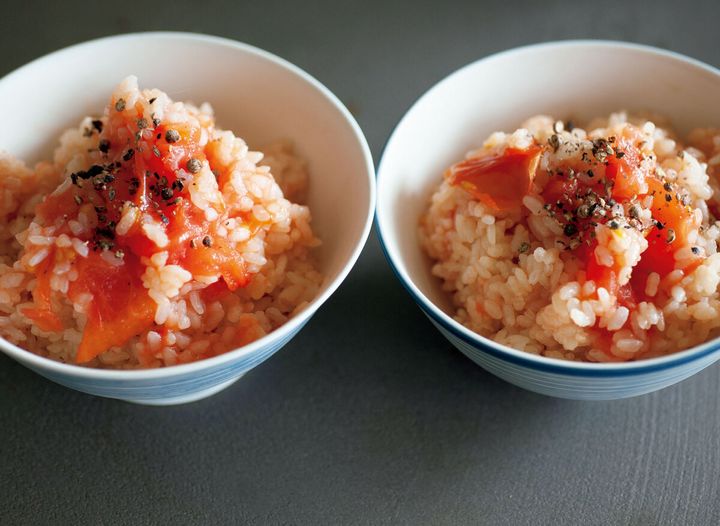 インパクト大な炊き込みご飯を教えてくれたのは、トマトを愛する人気の料理家ワタナベマキさん。熟れたトマトは加熱することで甘みが倍増、とろとろ食感になるんです。