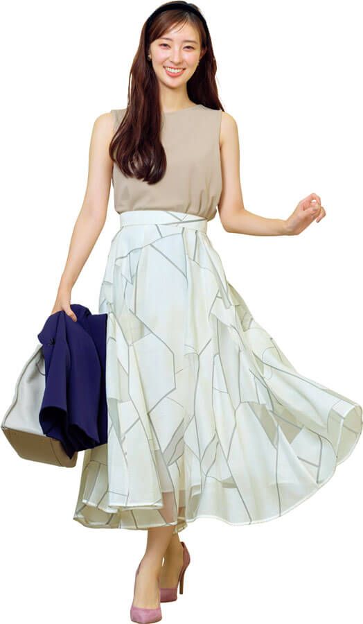 トップスを着回し:×シアースカートで軽やかにまとめれば暑い日でも快適!