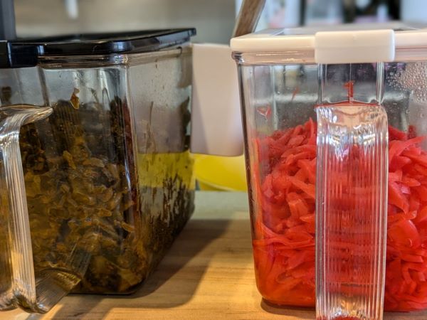 そして、自家製の「辛子高菜」と「紅生姜」もサービスです。
