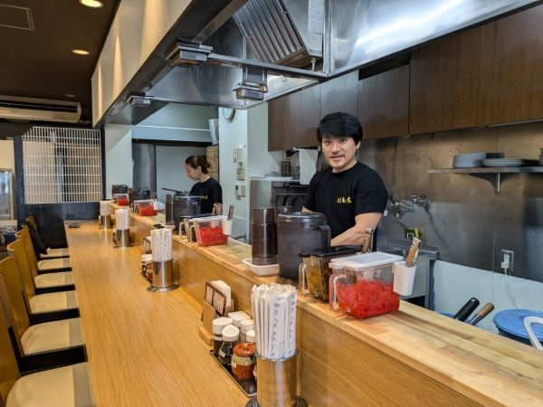 辛子高菜は、焼きめしに合わせてもおいしそうだったので、「半焼きセット」にすればよかった、とちょっと後悔。半焼きめしは量が多いそうですが、食べきれなかったらパックに詰めてくれるそうなので、次回は是非! 「さらに美味しいラーメンを目指して、日々頑張っています。」と店主の有吉(ありよし)さん。