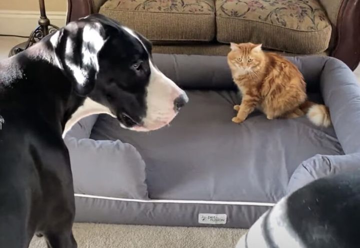 3. 犬用なのに〜 猫にベッドを取られて悔しい大型犬