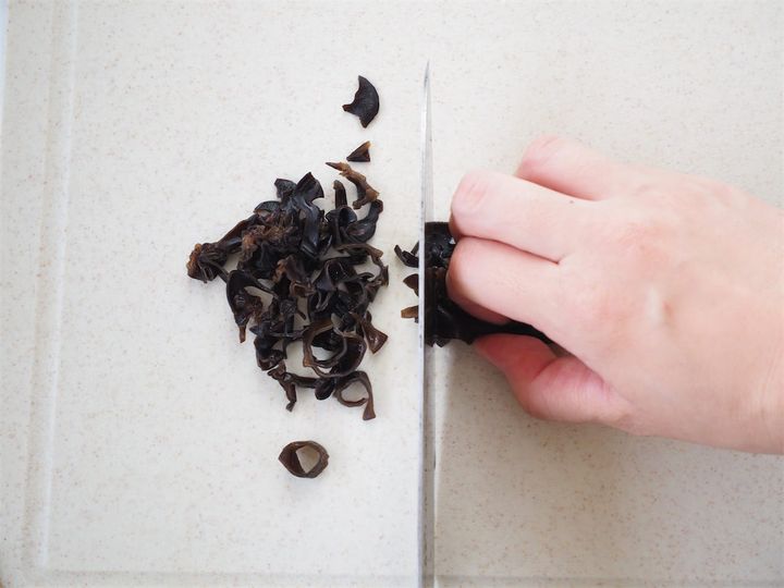 4. 1で戻したきくらげを細切りにする。