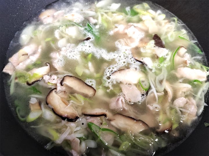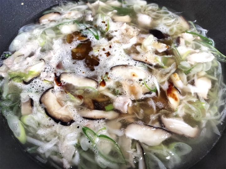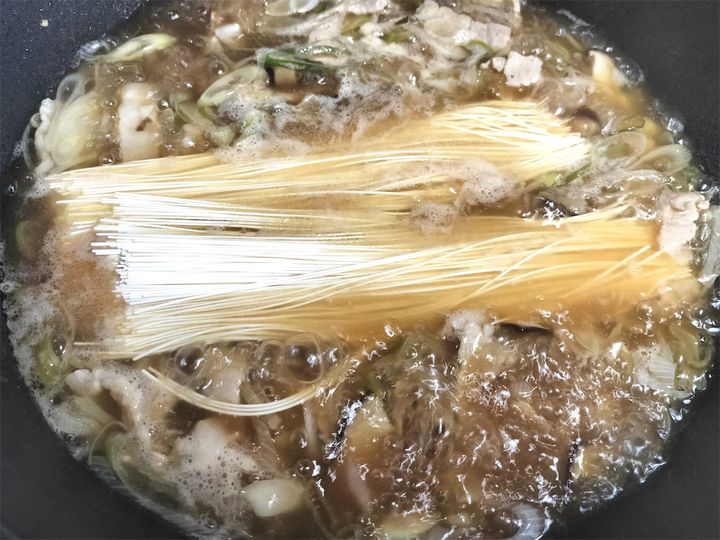 5. 煮立ったところにそうめんを加えて、ほぐしながら2分煮ます。