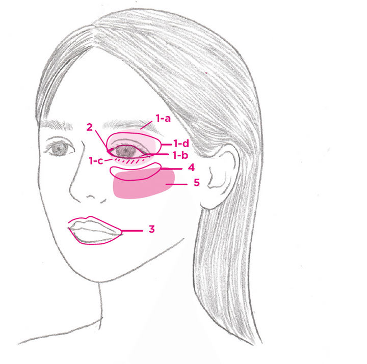 3. チークはインウイを頰の外側から内側にかけて入れて、フェイスラインをヘルシーに締める。