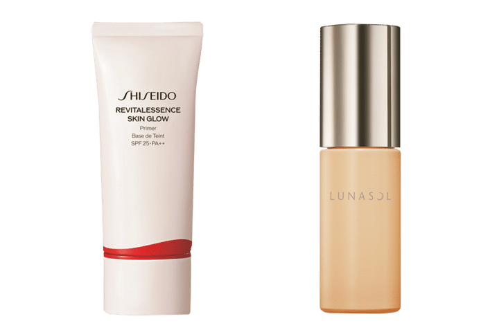 ヌケ感というテーマにおいてベースが大事なのは言わずもがな。今の気分はナチュラルなツヤ感がありつつ、程よくカバーされた肌。この2つが最強。左から:美容液処方の下地。エッセンス スキングロウ プライマー SPF25・PA++ 30g ¥5,280(SHISEIDO)、水分を感じさせるみずみずしいツヤ肌に。ルナソル クラリティフロウ リクイド SPF30・PA++ 30mL 全6色 ¥6,930(カネボウ化粧品)