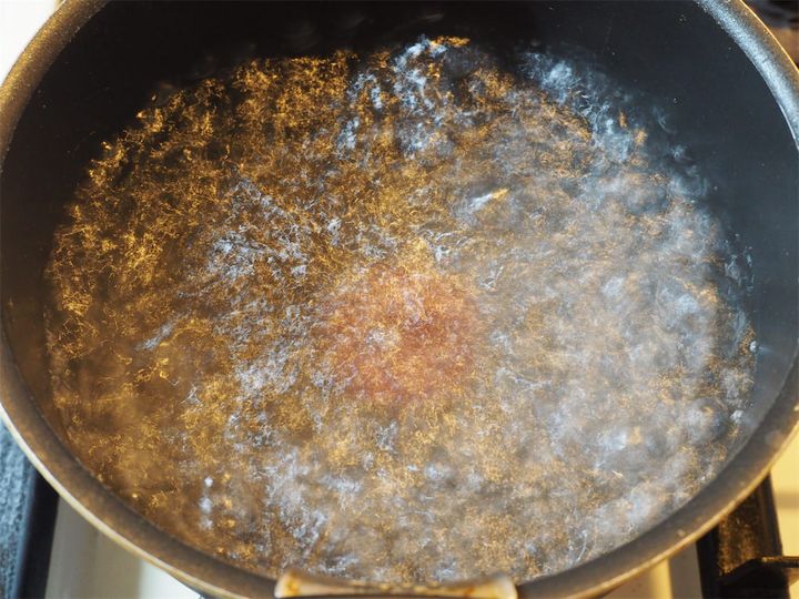 3. 鍋の中で自然に麺が回転するよう火加減を調整する。