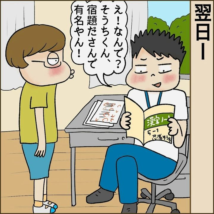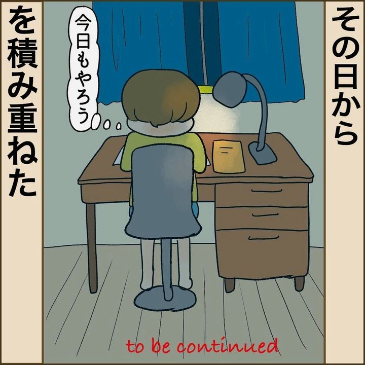 5年生にして初めて宿題を提出したそうちさん。「えらいぞ!明日も待ってる」と先生から褒められて、何かが変わりました。この日から「今日もやろう」を積み重ねていきました...。