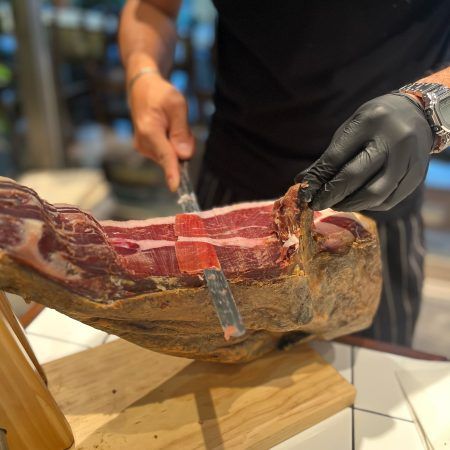 気軽に立ち寄れるバルとして、また雰囲気も少し変わるディナータイムには、原木からスライスしたハモンイベリコの生ハムで、お酒をいただくのもいいですね。