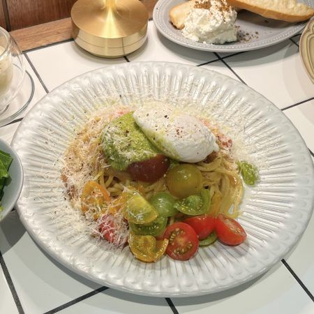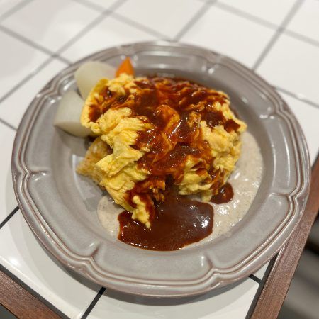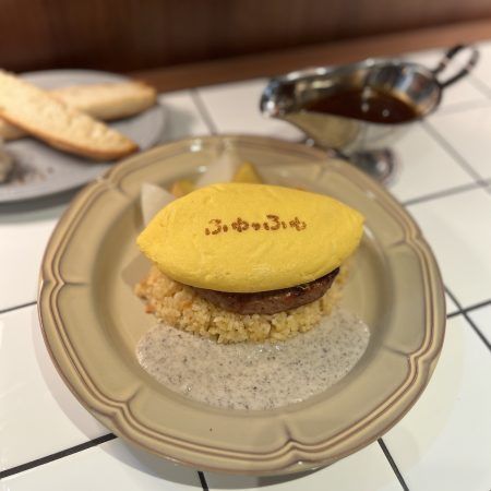 ランチタイムは、6種類のスパゲッティから選べる全6種のランチコースのほか、目の前でトロトロ卵が現れる「ふわとろオムライスハンバーグ」(1958円)や、