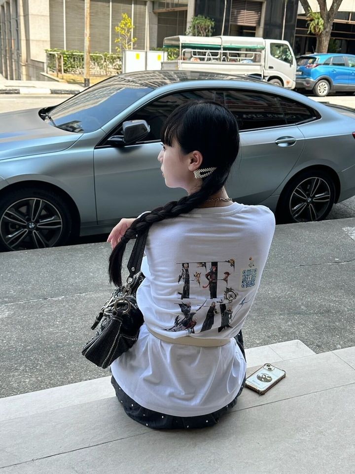 今年から活躍の場をシンガポールと東京との二拠点へ広げたAyaneは、都会的な建物と自然が融合するノスタルジックなシンガポールの町並みを背景に、FINAL FANTASY XIV × VOGUE JAPAN Tシャツのホワイトをメインにしたコーディネートで登場。甘めな要素を盛り込みながらもグレーを基調としたアイテム選びで、大人のガーリールックへと仕上げた。