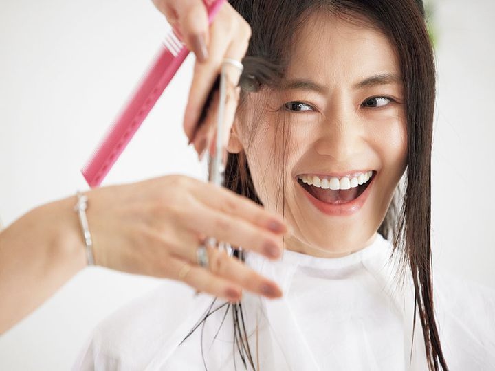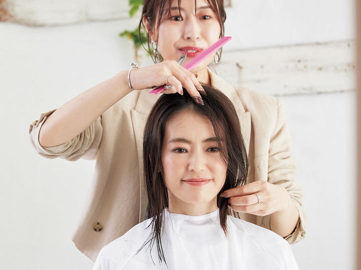 ハチ周りのレイヤーは髪が動く可動域も広がり骨格補正の効果も叶うので、結ぶ日が多い夏におすすめ。後ろはあえて重めにして、ダウンスタイル時に髪のキレイさはキープ。