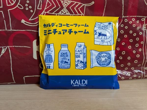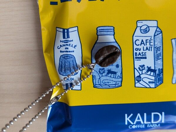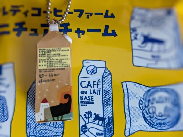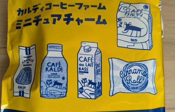 「ミニチュアチャーム」はパッケージのとおり、マイルドカルディ(10パック)、ボトル缶コーヒーマイルド、カフェオレベース(濃縮コーヒー)、シナモンロール、カヌレの全5種類が用意されています。