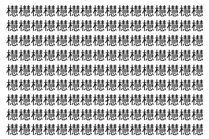2. 【脳トレ】「櫘」の中に紛れて1つ違う文字がある!?あなたは何秒で探し出せるかな??【違う文字を探せ!】